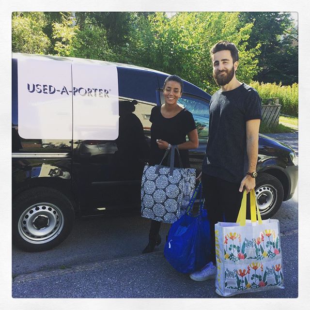 Idag kom #usedaporter förbi och hämtade upp både saker som ska säljas men framför allt mängder med kläder som ska skänkas till de syrianska flyktingarna på Lesbos via @vigorvadvikan. (De sorterade sopsäckarna ligger redan i bilen.)